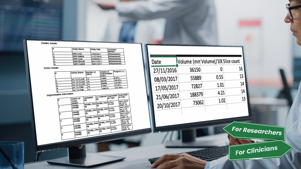 Quantitative outputs for clinical reports and research analysis.